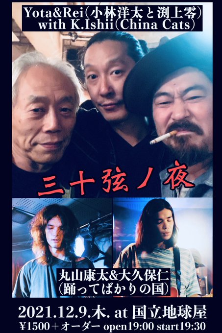 26 11月 2021 wac all, PAST SHOWS (SOLO) 2021-11-26 wac 2021.12.09(THU) 国立地球屋 丸山康太&大久保仁 ソロ 【日時】 2021年 12月 9日(木) 19:00開場 19:30開演 【会場】 国立 地球屋 【チケット】 前売 1,500 円 +オーダー 国立 地球屋 WEBSITE