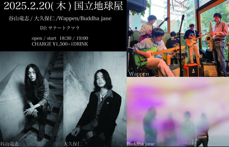 20 2月 2025 wac PAST SHOWS (SOLO) 2025-02-20 wac 2025.02.20.THU @地球屋谷山竜志・大久保 仁ソロ -Live- 谷山 竜志 From 踊ってばかりの国 大久保 仁 From 踊ってばかりの国 Buddha jane Wappen -DJ- サナート クマラ OPEN 18:30/ START 19:00 CHARGE ¥1,500+1DRINK 地球屋 オフィシャルサイト