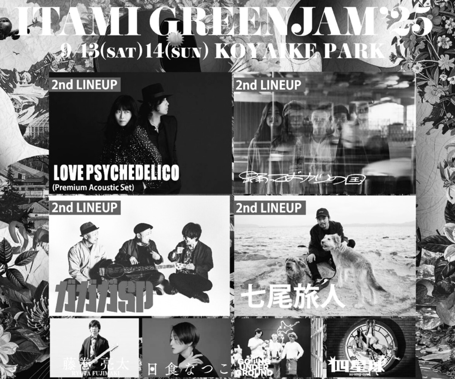 PAST SHOWS 19 7月 2025 2025.09.13.SAT【ITAMI GREENJAM’25】兵庫県 【ITAMI GREENJAM’25】OVE PSYCHEDELICO(Premium Acoustic Set)【New! 】/ 踊ってばかりの国【New! 】/ ガガガSP【New! 】/ 七尾旅人【New! 】/ 藤巻亮太 / 日食なつこ GOING UNDER GROUND / 四星球… wac