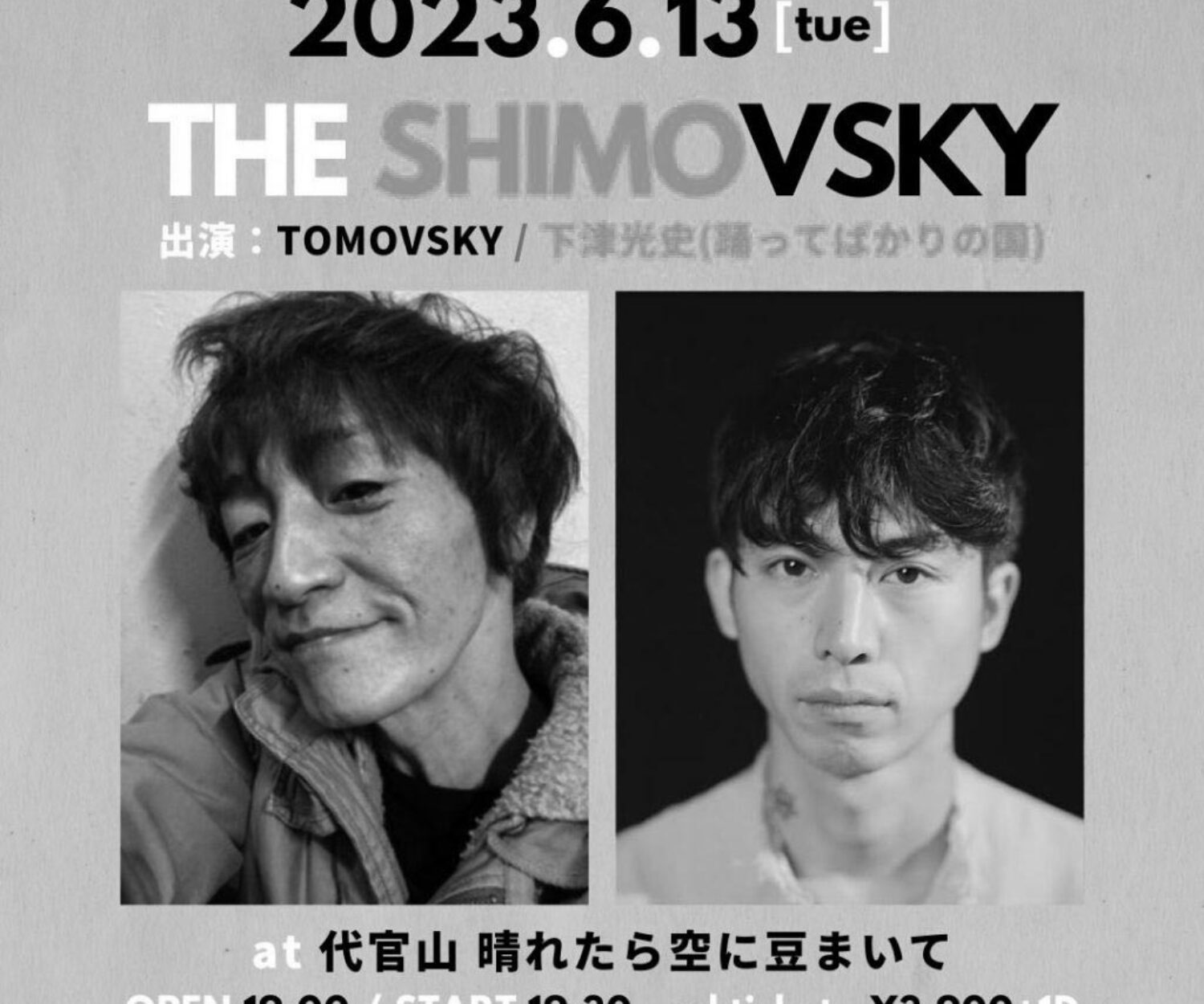 all, PAST SHOWS (SOLO) 05 5月 2023 2023.06.13TUE 代官山 晴れたら空に豆まいて 【THE SHIMOVSKY】TOMOVSKY /下津光史(踊ってばかりの国)/ OPEN19:00 / START 19:30 wac