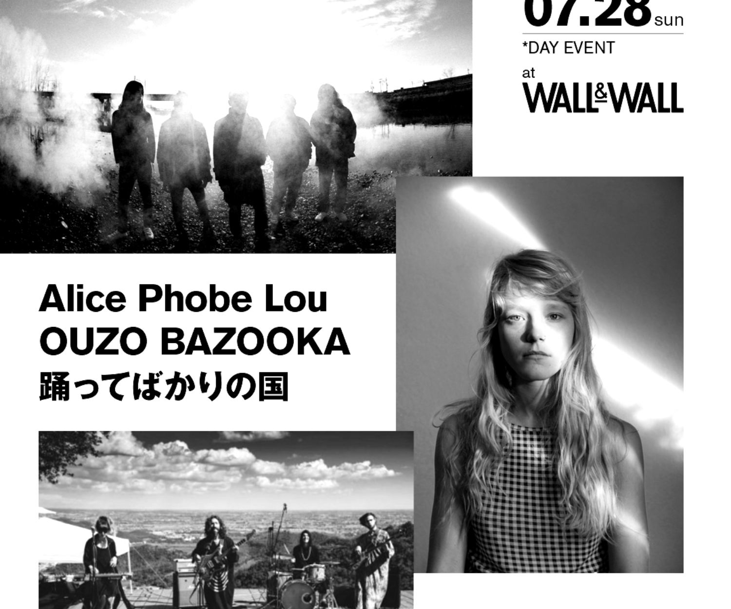 all, PAST SHOWS 01 7月 2019 2019.0 7.28.SUN 南青山WALL& WALL 【ACT】 Alice Phoebe Lou × 踊ってばかりの国 × OUZO BAZOOKA / 17:00 OPEN wac
