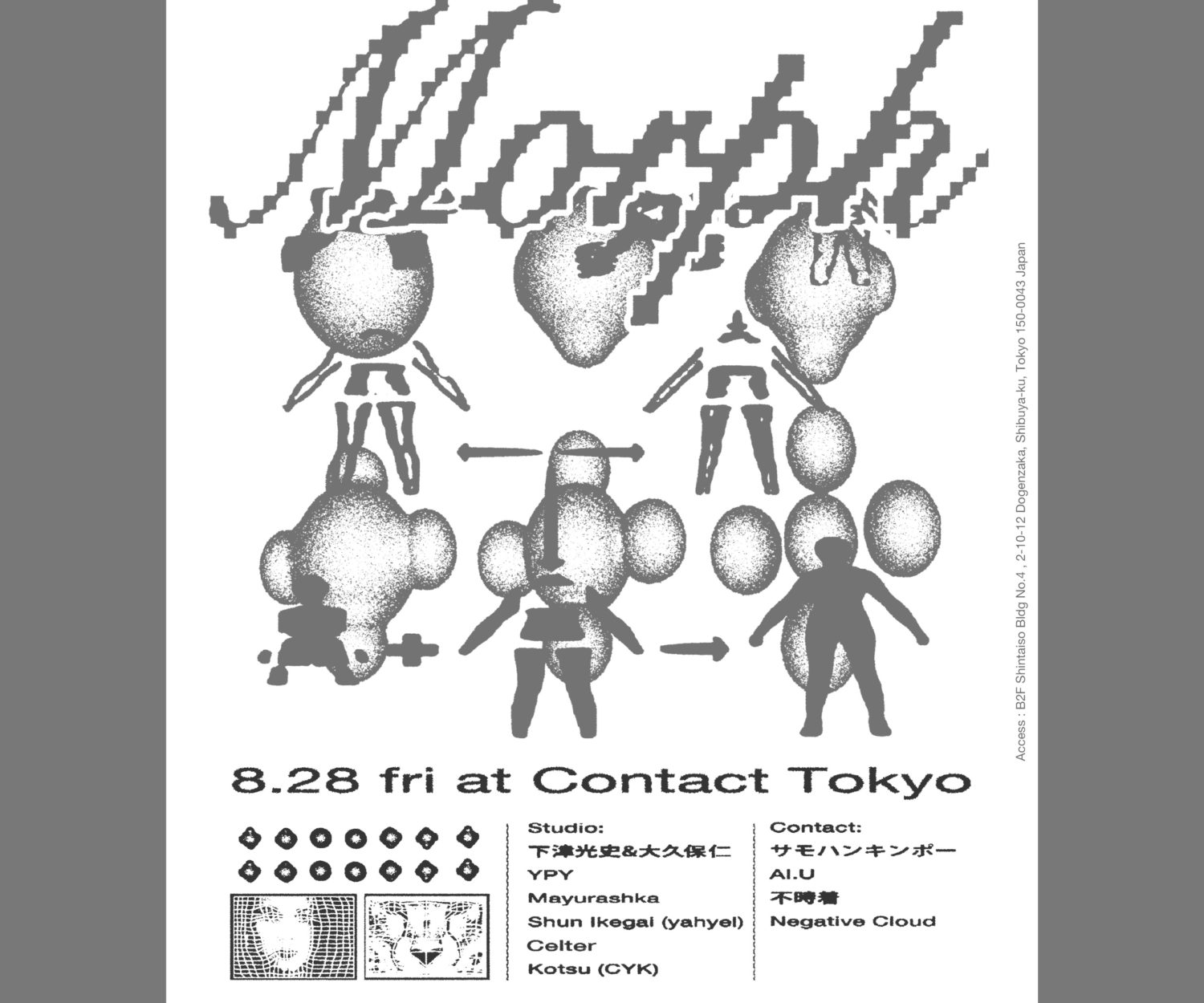 PAST SHOWS (SOLO) 21 8月 2020 2020.8.28 FRI CONTACT TOKYO 下津光史&大久保仁 【Morph】下津光史&大久保仁,YPY,Mayurashka,Shun Ikegami, Center,Kotsu(CYK)、サモハンキンポー、AI.U、不時着、Negative Cloud / 22:00OPEN wac