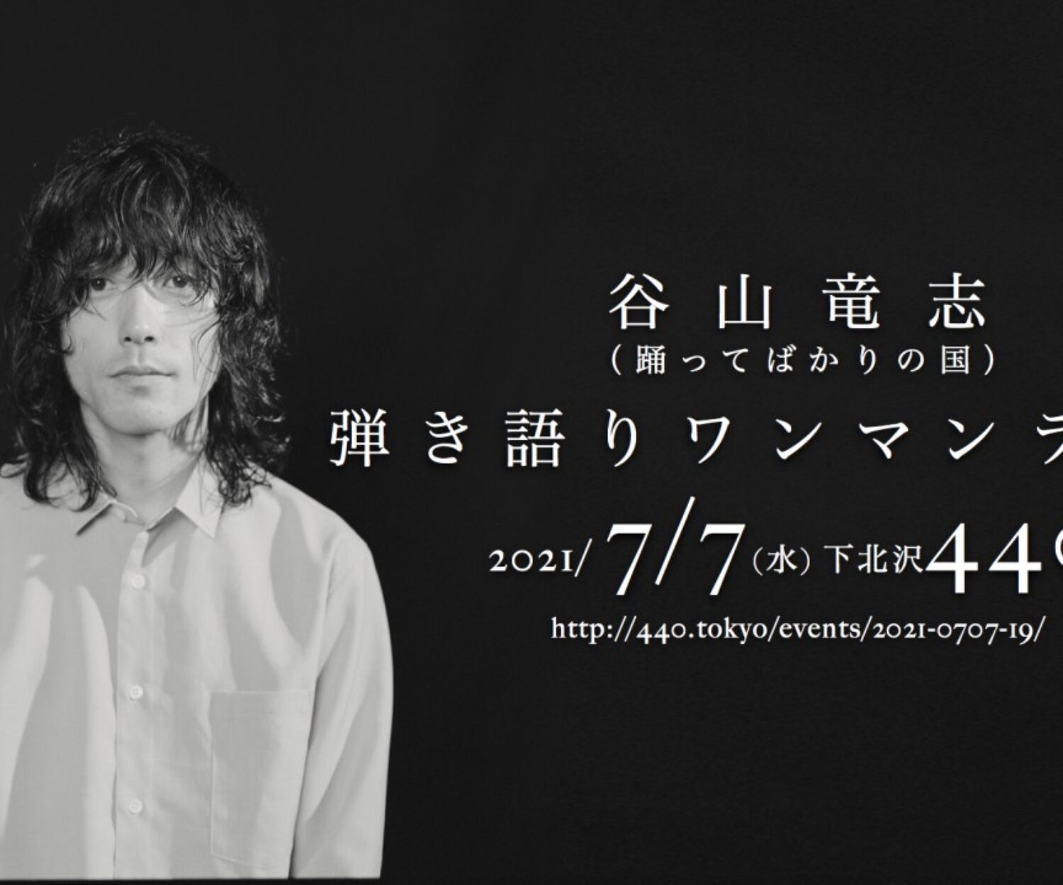all, PAST SHOWS (SOLO) 06 7月 2021 2021.07.07(WED)下北沢440 谷山 竜志 ソロ 【弾き語りワンマンライブ】 OPEN 18:30 / START19:00 来場&配信 wac