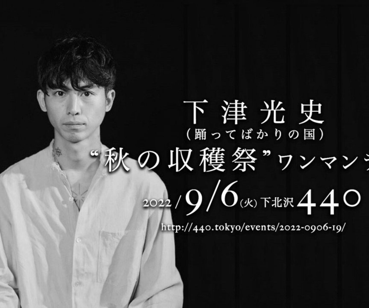 all, PAST SHOWS (SOLO) 13 8月 2022 2022.9.06(TUE) 下北沢440 下津光史 ソロ 【ワンマンライブ “秋の収穫祭” 440(four forty) 20th Anniversary】ACT: 下津光史(踊ってばかりの国) OPEN/START 18:30/19:00 wac