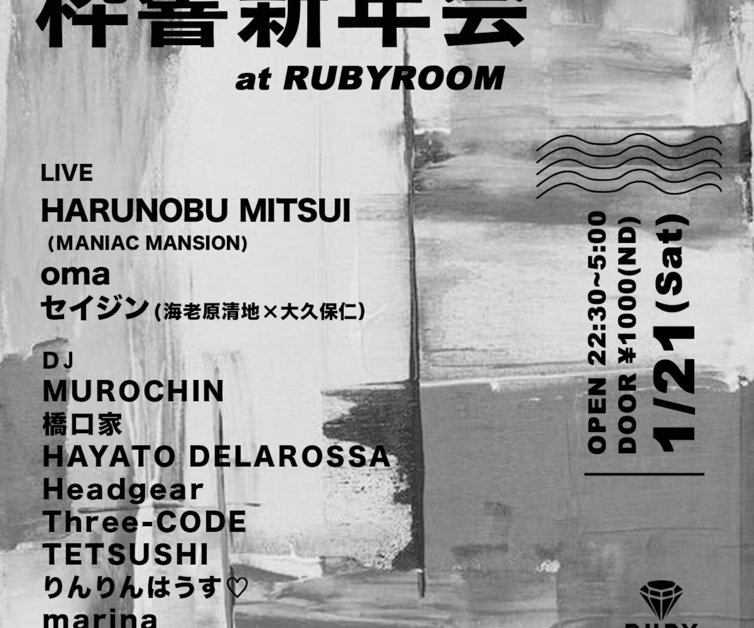 all, PAST SHOWS (SOLO) 06 2月 2023 2023.01.21(SAT) 渋谷 RUBY ROOM 大久保仁 ソロ 【酔響新年会】ACT: セイジン(海老原清地×大久保仁)/HARUNOBU MITSUI / oma ほか OPEN22:30~ wac