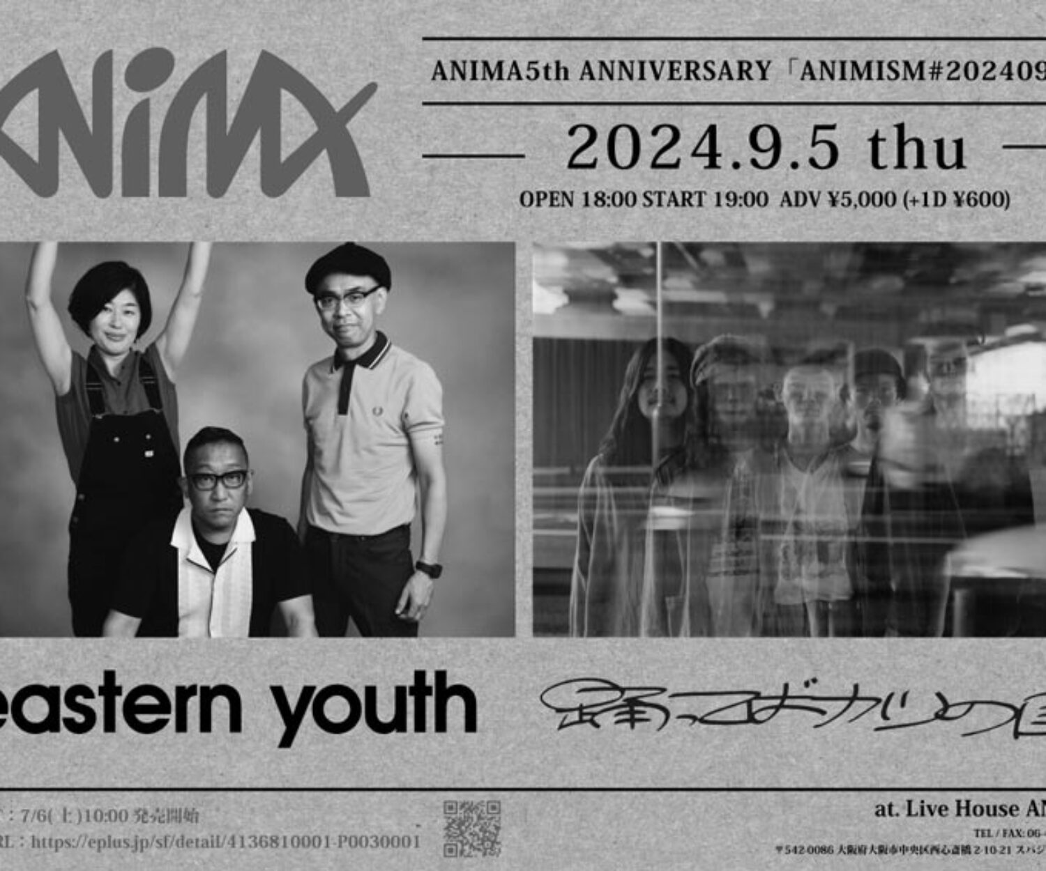 all, PAST SHOWS 05 7月 2024 2024.09.05.FRI 心斎橋ANIMA ANIMA5th ANNIVERSARY【ANIMISM#20240905】eastern youth / 踊ってばかりの国 OPEN 18:00 / START 19:00 wac