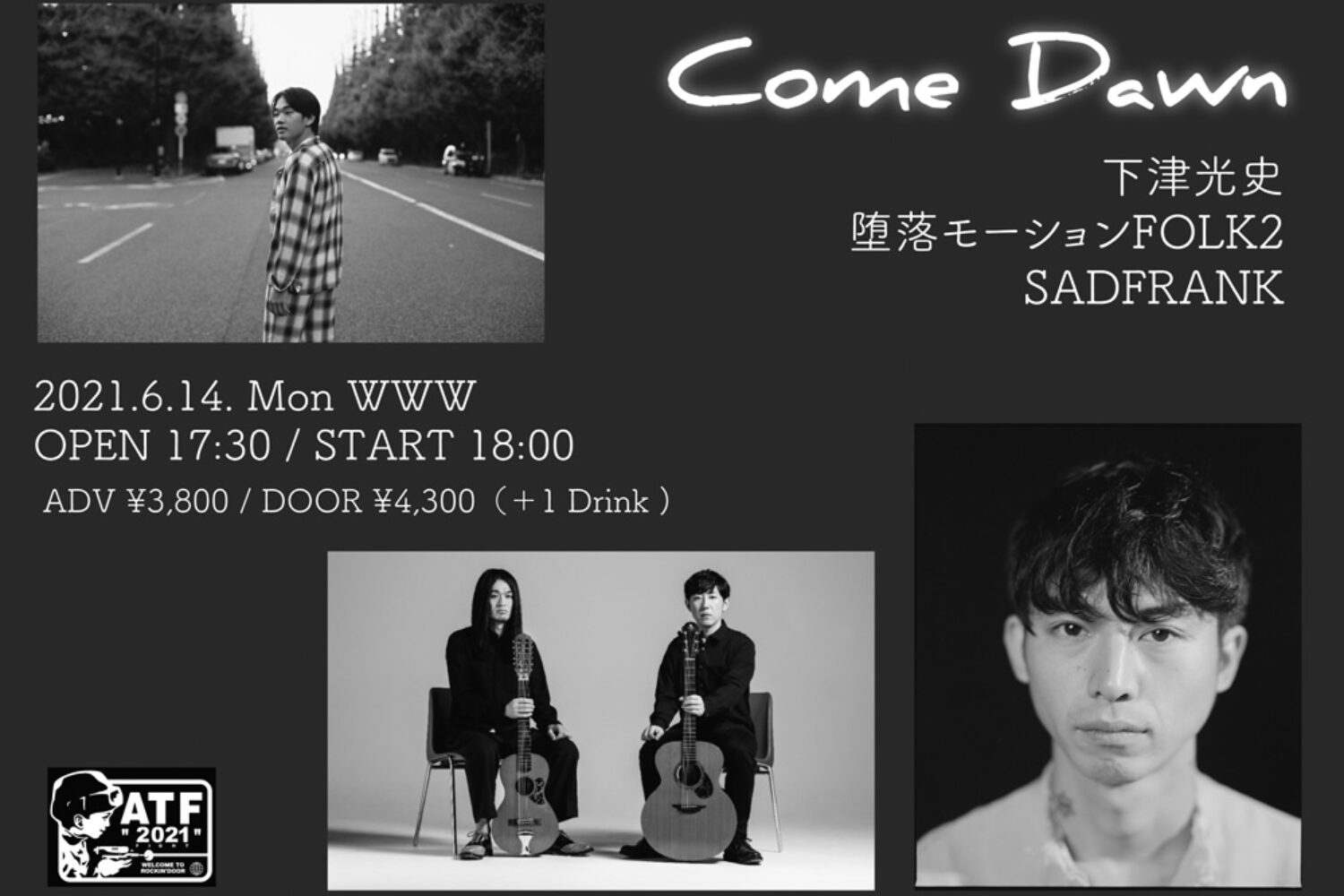【Come Dawn】下津光史・堕落モーションFOLK2・SADFRANK OPEN 18:30 / START19:00