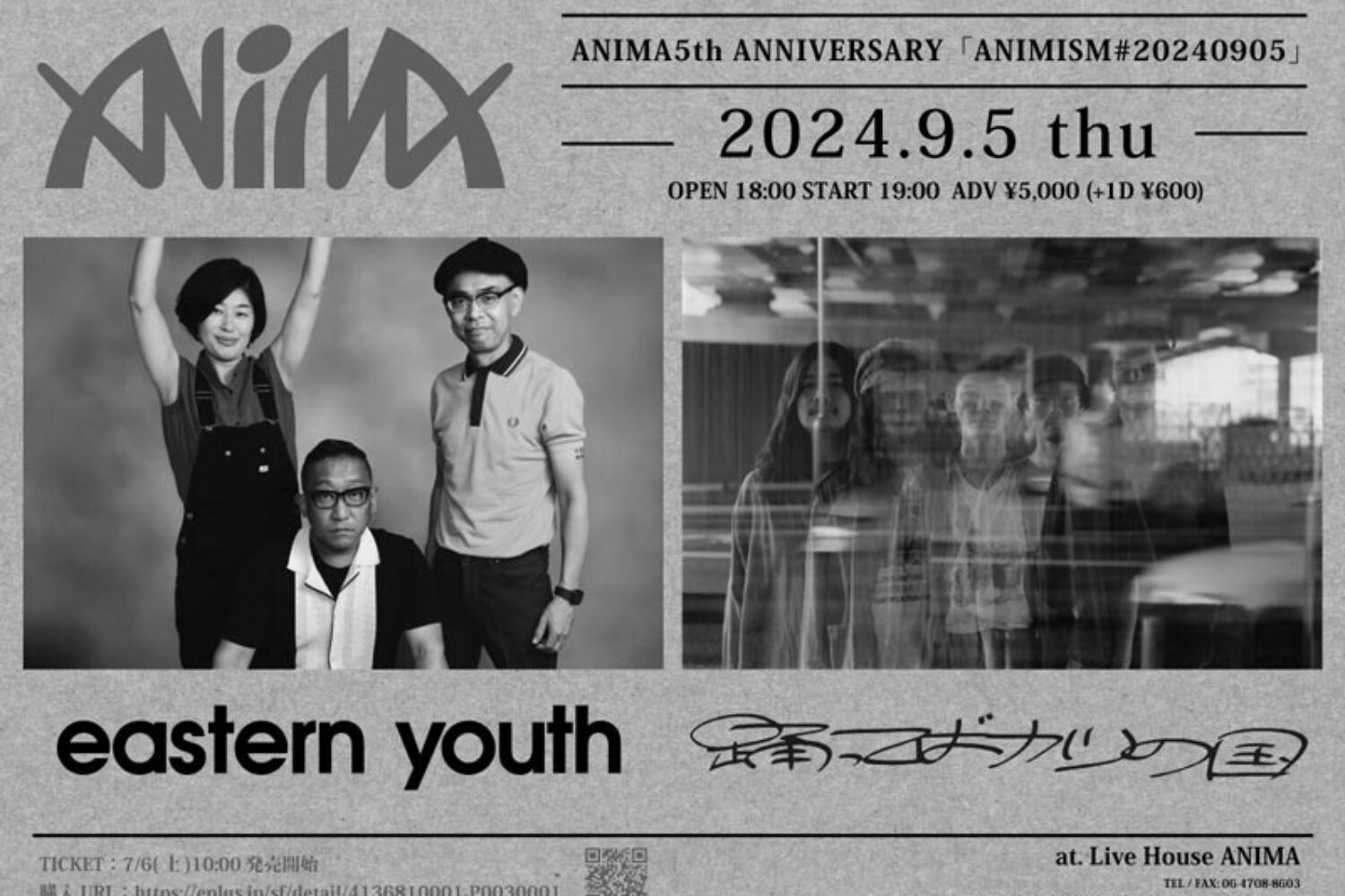 心斎橋ANIMAの5周年記念企画、ANIMA5th ANNIVERSARY【ANIMISM#20240905】で、eastern youth との2マンライブが決定いたしました・・・