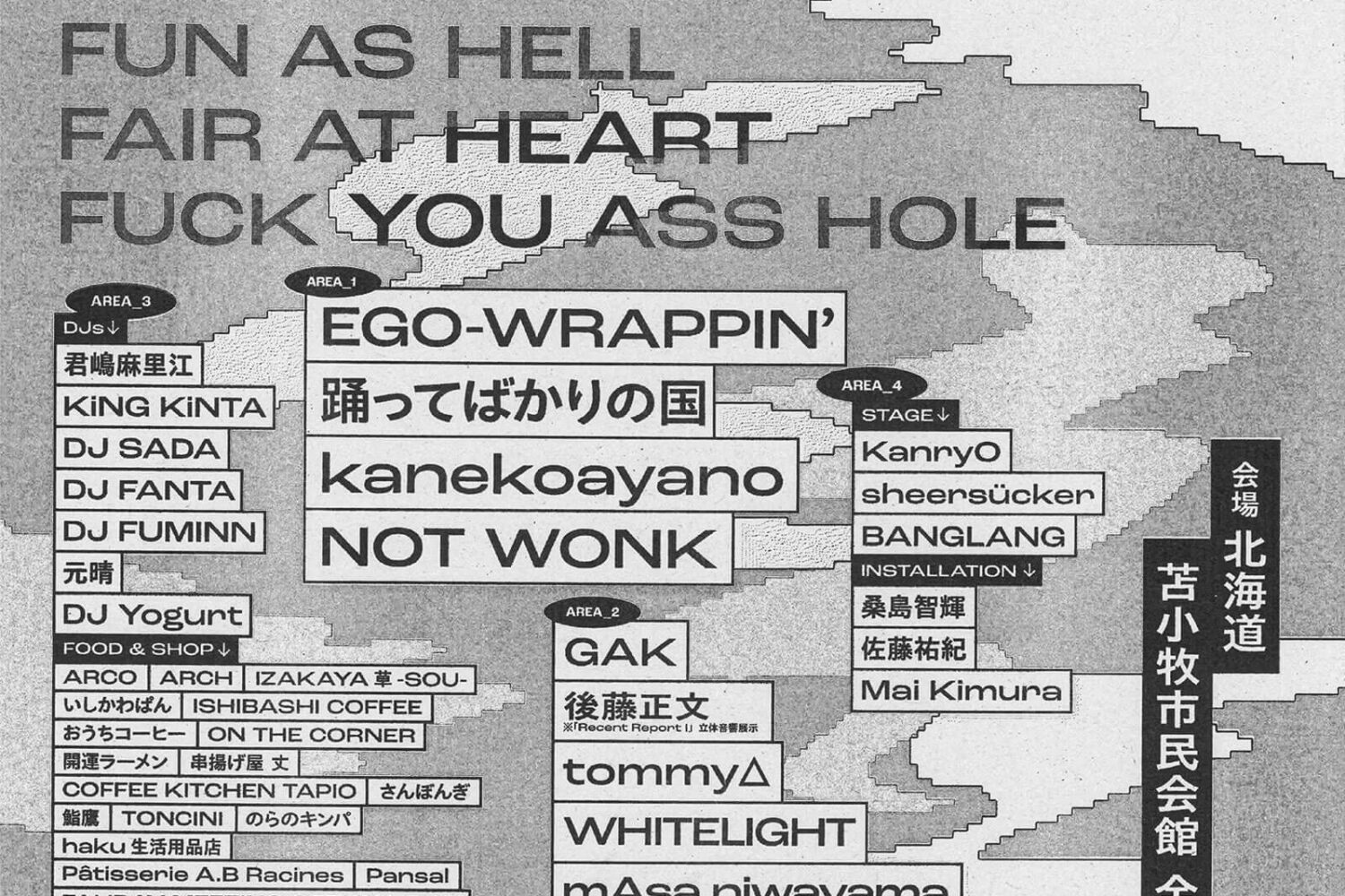 加藤修平発案、 表現の交換市「FAHDAY2024」第四弾出演アーティストとして、NOT WONKと共に苫小牧を拠点とするアクトや写真家・桑島智輝の作品展示など全18組を発表。エリアマップも公開。