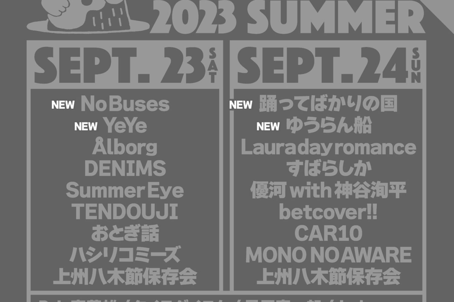 【MACHIFES. 2023 SUMMER】CAR10・betcover!!・Laura day romance・MONO NO AWARE・踊ってばかりの国・すばらしか・優河・ゆうらん船・上州八木節保存会・more… OPEN / START 10:00