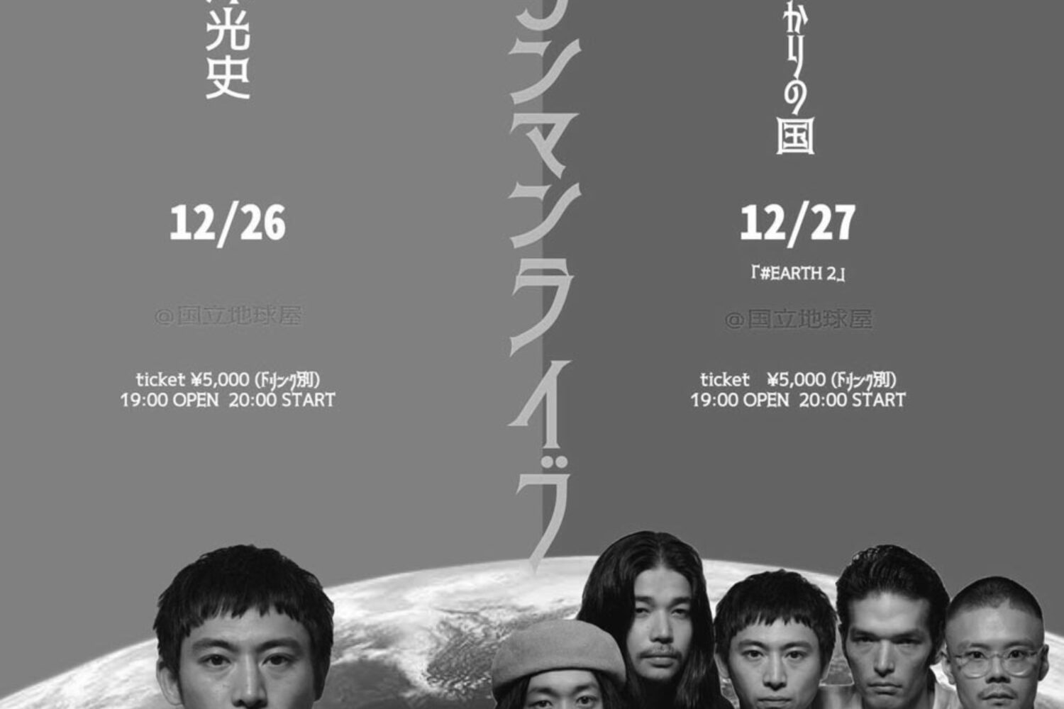12/26-27に国立地球屋でライブが決定いたしました。26日下津光史ソロ、27日踊ってばかりの国のライブとなります。チケットの受付は明日(19日)の19時より予約開始です!
