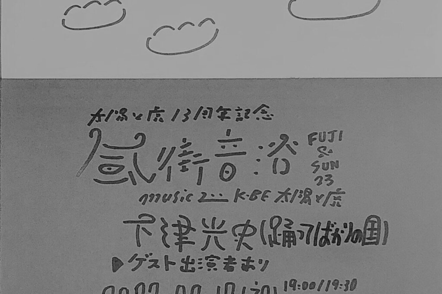 太陽と虎13周年記念【 風・街・音・浴 – FU-JI & SUN’23 – 】 ACT: 下津光史(踊ってばかりの国) OPEN/START 19:00/19:30