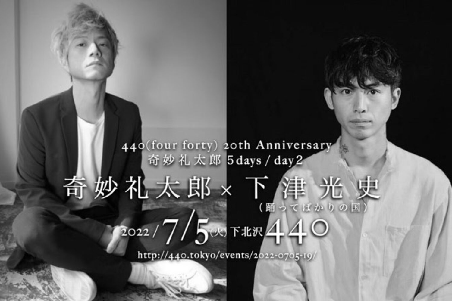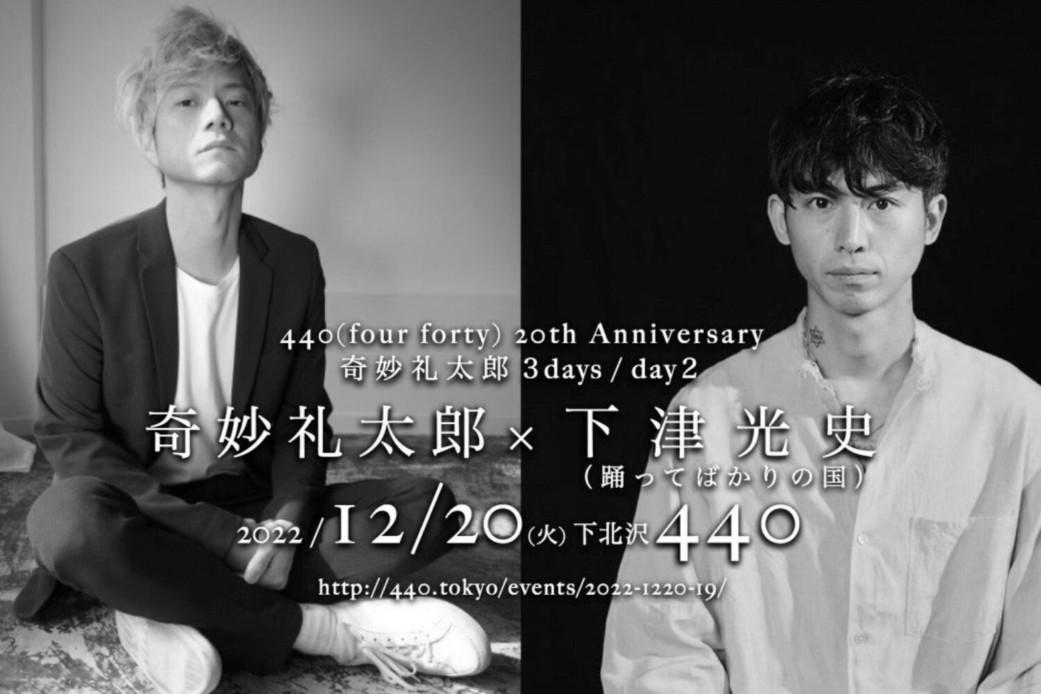 【“奇妙礼太郎 3Days / Day2” 440(four forty) 20th Anniversary】ACT: 奇妙礼太郎 × 下津光史(踊ってばかりの国) OPEN/START 18:30/19:00