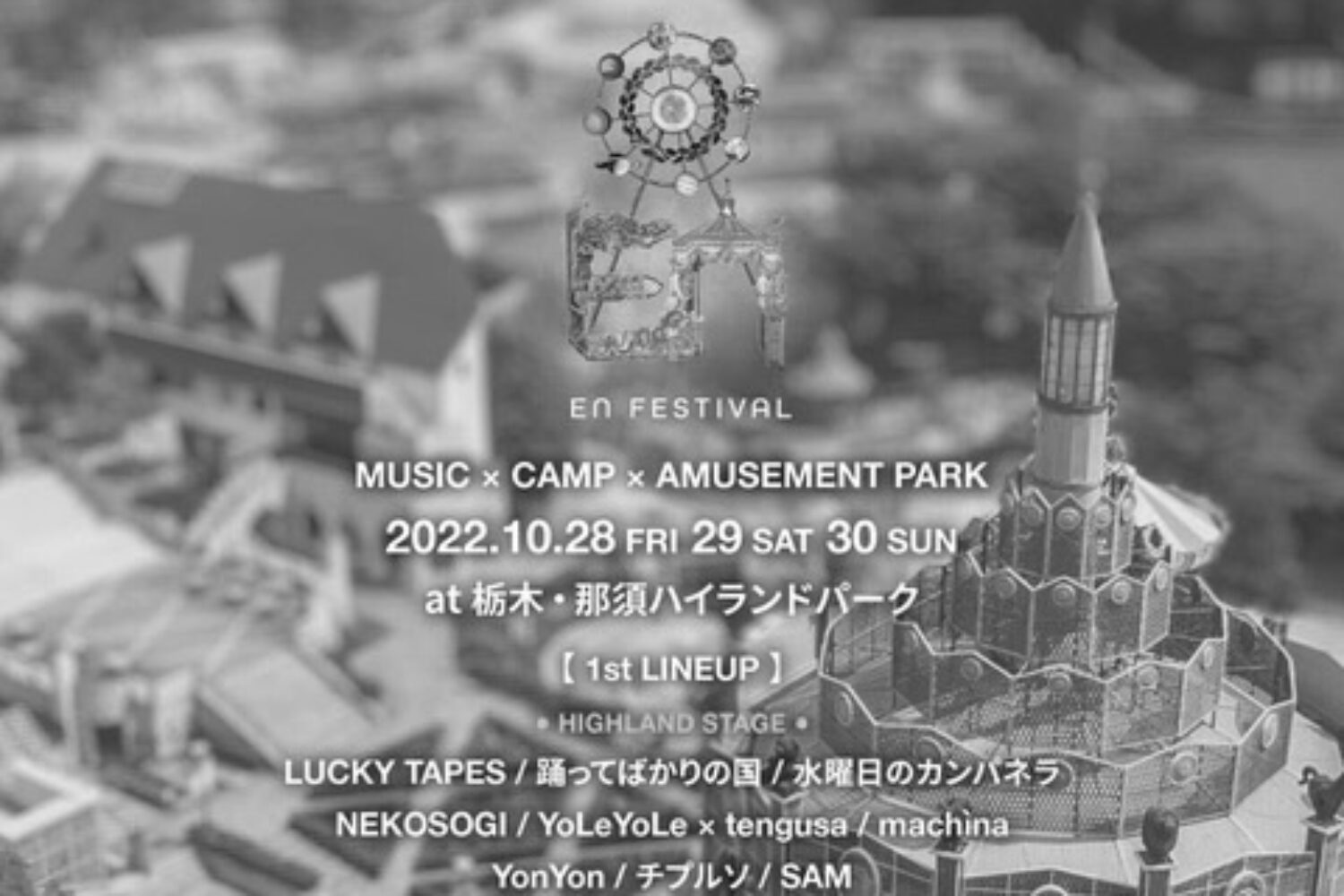 【EN FESTIVAL】ACT: LUCKY TAPES / 踊ってばかりの国 / 水曜日のカンパネラ / NEKOSOGI / YoLeYoLe × tengusa / machìna / YonYon / チプルソ / SAM / DRUNKEN KONG / ERIMIYA / DISC JUNKEY / KAZYA / Ryooky / Symbolic / CHIDA / CMT and more…